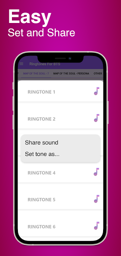 BTS Ringtones is Free for you to download then you can set one of popular music from BTS to be your Ringtones Soundboard, Notification sound or Alarms. This application is update for this 2021 year so you can enjoy with BTS world, Love Alarm, Love Alert, Love Yourself and Map of the Soul. Moreover, it is available for you an offline.