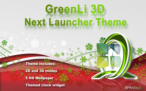 GreenLi 3D - "Next Launcher" Theme for 2D and 3D modes, decorated in red and green tones and includes: