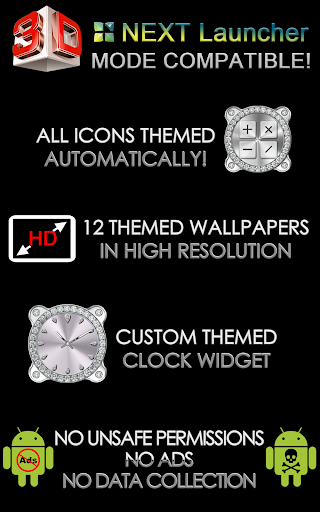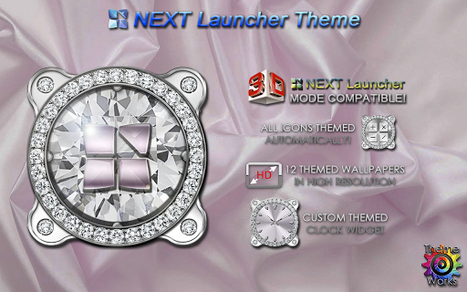 Next Launcher 3D theme. Extremely detailed and high quality elegant and modern Next Launcher theme with high definition graphics auto-themed icons, 12 custom themed HD wallpapers, and themed clock widget, to give very detailed and defined graphics even in devices with the highest resolution screens. Everything is themed to the last detail, using textures, lighting effects, reflections and gradients to give a great contrast and quality look.