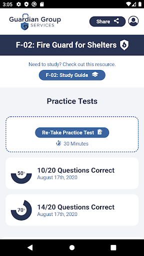 The app has a link to the official FDNY study material for the F-02 exam and it will also keep a record of your test history so you can go back and see what you got right and what you got wrong.