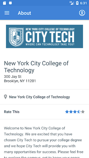 Welcome to New York City College of Technology! Stay connected with New York City College of Technology (NYCCT) wherever you are. Our mobile app provides information on what is happening around campus and provides up-to-date information on student events and activities. In addition, you can access information about your department and major, enrollment and student affairs departments, as well as neighborhood activities.