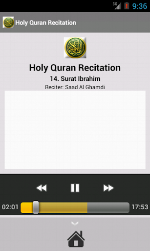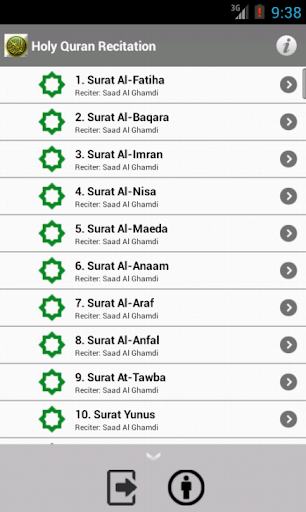 Holy Quran Recitation app is an application under the Android platform which allow users to listen to the Holy Quran recitations by reciter Saad Al Ghamdi using their android device.