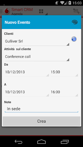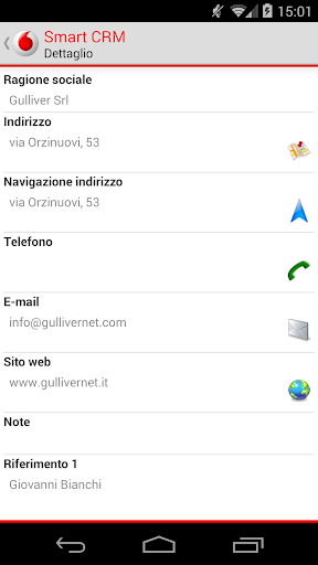 Vodafone Smart CRM è l’Applicazione Mobile della famiglia SmartApps di Vodafone pensata per le grandi aziende italiane per gli utenti con esigenze di lavoro in mobilità e che necessitano di avere tutte le informazioni sempre a portata di mano che permette di gestire le giornate lavorative organizzando gli eventi in azienda, con i clienti e le attività personali, permette di mantenere una reportistica completa delle visite effettuate e include una gestione dei clienti.