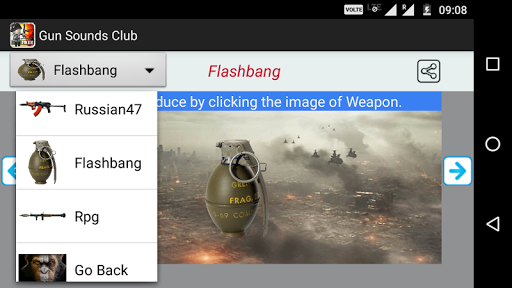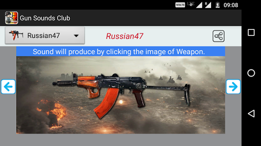 Gun Sounds Club App contains amazing gun sounds with high quality pictures.