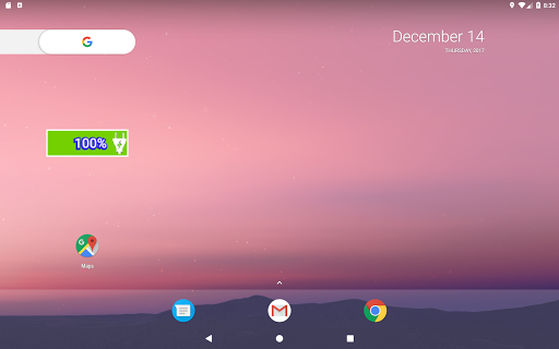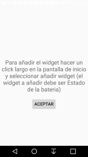 Presenta en pantalla de inicio, una barra con el tanto por ciento de bateria restante. Si queda poca bateria la barra se presenta en color amarillo y si queda muy poca en color rojo. En otro caso se presenta en color verde.