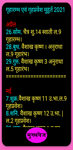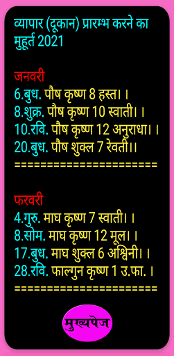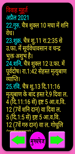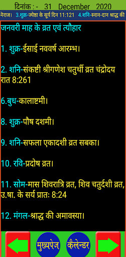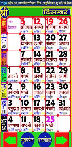 This app shows Hindu festival, Amavasy, Poornima, Paksh (Shukla / Krishna) Ekadashi, Chathurthi, Subha Muhurat, etc