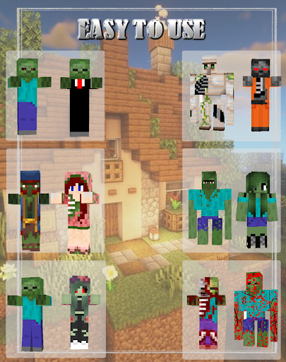 Installing a new skin will allow you to change the appearance of your character on the server. To make it more recognizable, set apart from the crowd. Huge selection of skins for Minecraft fans for all. Here you can download Zombie Skins for Minecraft . We have skins for boys and girls, cartoon hero skins, movies and games. Everyone will be able to find themes about hobbies and characters now you can see skins directly on your phone, as well as to move and twist them! Skins can be applied directly to games or downloaded to the gallery. Don't forget to Like them, so that the skins get to the top and other users can quickly find the most beautiful and attractive skins in this app!