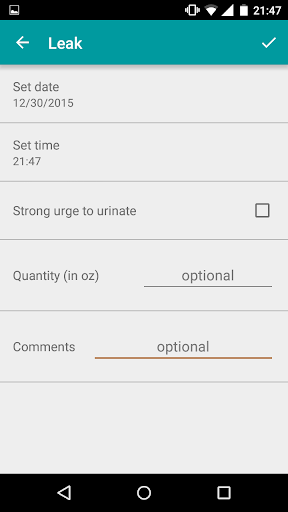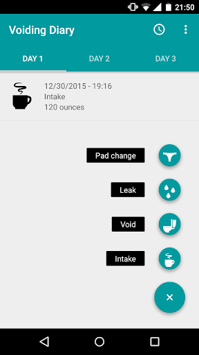 With this diary you will be able to record your daily liquid intakes, voids, leaks of urine and pad changes for three days. Having finished the records for the three days, you can send the report to your doctor via email.