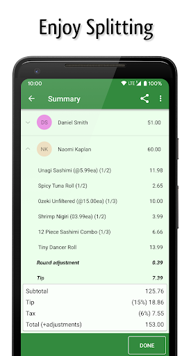 No more awkward moments of calculating and negotiating with your loved ones after receiving the bill, with Split It - sharing bills is easy as 1 2 3