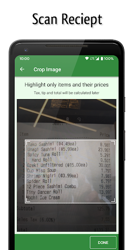• Scan your receipt and select the relevant items to be shared, our sophisticated algorithm will do all the heavy lifting for you - all the items will be displayed with their prices… no need to add tax and tips - we got this covered.
