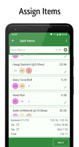 • Assign items to the relevant persons, set the desired tax and tip and you are done!