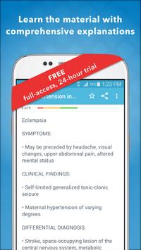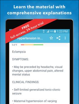 The full version includes over 250 flashcards organized into 43 medical categories from early pregnancy risks to multiple gestations. Each flashcard provides a clinical vignette requiring the application of textbook knowledge to real world scenarios. The cards include a comprehensive discussion of symptoms, clinical findings, differential diagnosis, complications, treatment and prognosis.