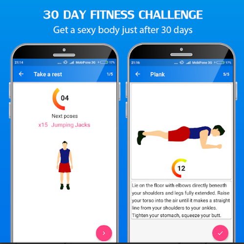 By fully considering workouts rules, 30 Day Fitness Challenge Workout increases exercise intensity step by step, so you can easily stick daily workouts. Don't need to go to gym, just use your bodyweight and take a few minutes a day, 30 Day Fitness Challenge Workout will greatly help you keep fitness and lose weight effectively.