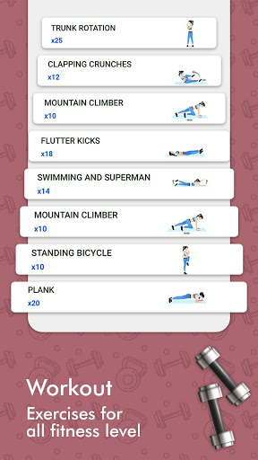 The Exercise List will include the following Gym Home workout & Bodybuilding: