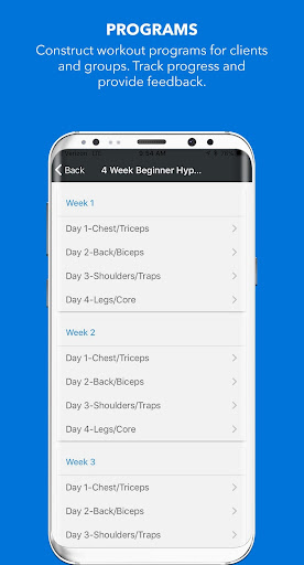 - Receive interactive coaching (if applicable) with workout assignments, in-app messaging, photo/video uploading, and progress metrics