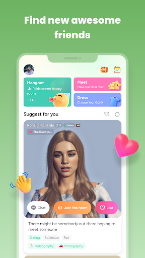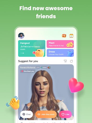 Meet new people, hangout and chat with friends in our 3D live voice chat rooms.