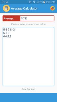 A quick and easy way to give you an average of a list of numbers. The numbers can be comma, space or enter separated, typed in or pasted from another app to give you an average. With screen optimization for when the keyboard is open making it easy to use and invalid numbers will be ignored but a warning given. Suggestions are welcome!