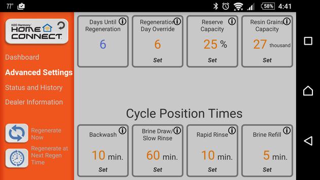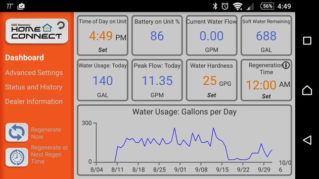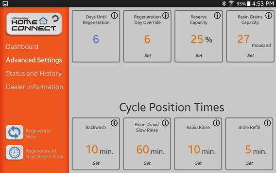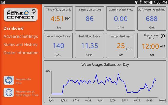 The Home Connect app makes setting up and monitoring your Home Connect water treatment system easy! When used with a Home Connect valve the user, through the app, can do the following functions:
