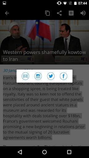 - ‘Speak’ option available for articles, interviews, speeches and research.