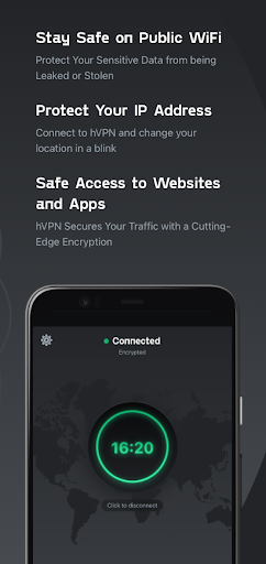 hVPN secures your online traffic with advanced encryption. Thus, your sensitive data is safe when you browse on any network.