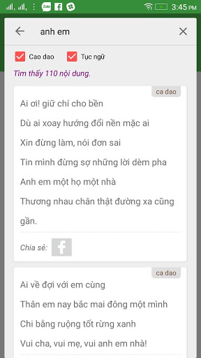 Ca dao - Tục ngữ Việt Nam là ứng dụng tuyển chọn trên 17,000 bài Ca dao, tục ngữ trên khắp cả nước.