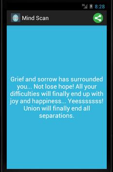 This Mind Scanner prank app is for your entertainment. It scans your fingerprint and gives you advice based on what you have in mind.