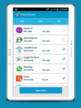 Aside boosting your device automatically, the app also allows you to shut down each running app separably in the ‘tasks’ section.