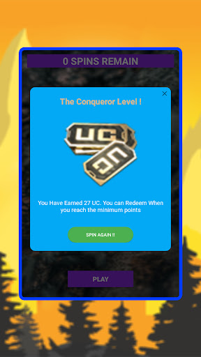 This free original app to win unlimited uc bc, you need to tap the play button and wait for random spin wheel and stops at some random point, the result of winning uc will be added to your balance at the screen. So you can experience luck by uc while playing this spinner.