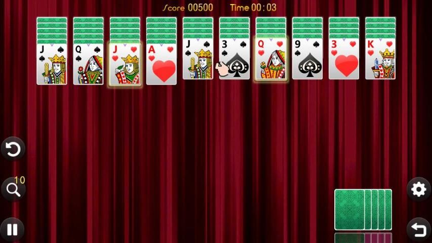 There are 4 difficulty levels in the game: beginner, where you play with one suit only, intermediate (two suits), advanced (three suits) and expert (4 suits).