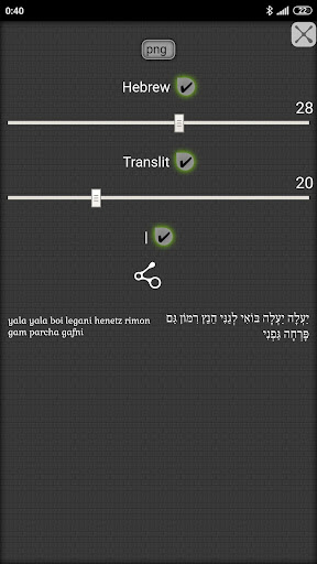 Hebrew text with vowels. Functions - copy - share - font settings - Translit - Russian - English - Spanish - My lng