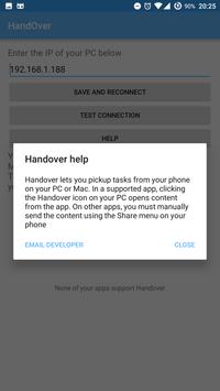 1 - From the Share Menu. In most apps, you can use the Share menu and choose "Handover". The content will automatically open on your PC