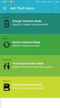 Anti Theft triggers an alarm when the phone is moved or the charger is disconnected and