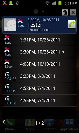 I Know It? Displays the time of missed calls by phone rang, and so they can deal with onecall spam. Not stored in contact of a particular phone number of missed call log and received a similar phone log can be queried together. Notification of missed call log do not confirm a specific time can make possible. Missed call notification1 Notification destination phone Number of incoming numbers are stored in your address book or phone rang more than a certain amount of time only if the time can be set to notify.2 Notification method Settings according to your phone beep, vibration or screen on.3 A missed call is received and also set a time to withhold information At a particular time does not interfere with unnecessary alerts. Motion detection Motion detection in case of missed calls by turning the screen is the ability to announce the arrival of missed calls. If you are away over the phone and come back later, you can see missed calls by simply shaking the phone.