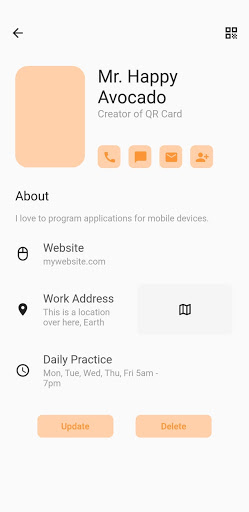 QR Card allows for a simple and instantaneous exchange of contact information. This application allows you to have both a business and personal contact card which can be shared with whoever you chose.
