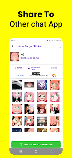 This app provides a huge sticker pack of Spy x Family such as Loid Forger, Anya Forger, Yor Forger, Bond Forger, Yuri Briar, Damian Desmond, Franky Franklin