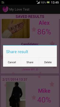 his/their name/s, and we recommend you to get his/their photo for a better reliability. Do you dare? Don't worry, if not, we'll put it for you. In addition, with the result we'll give you 4 words that will be the key to join you more. How to play them depends on you. You will be able to add personal notes too and save the results. With a long touch on each them, you will be able to delete or share with your best (or worst) friends, social network...