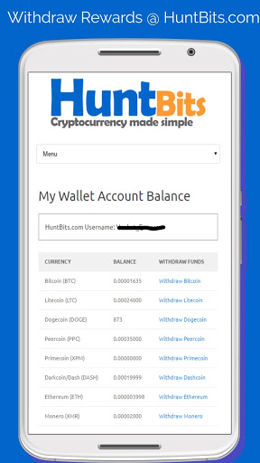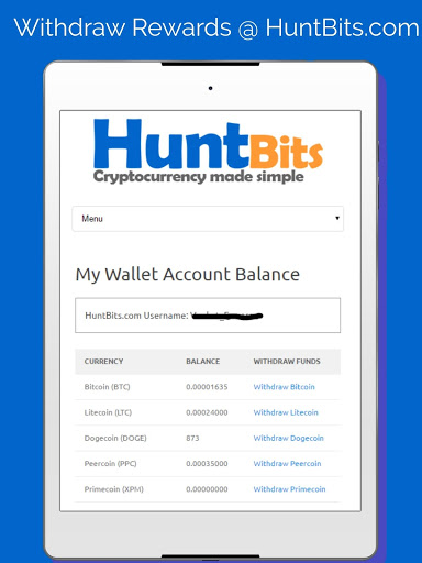 You need a HuntBits.com account. All the rewards collected from FreeBits app will be instantly sent to HuntBits.com wallet after you sign-in.The claim rate differs for time to time and coin to coin. All the values are shown in Satoshi. Except Dogecoin is one complete coin.