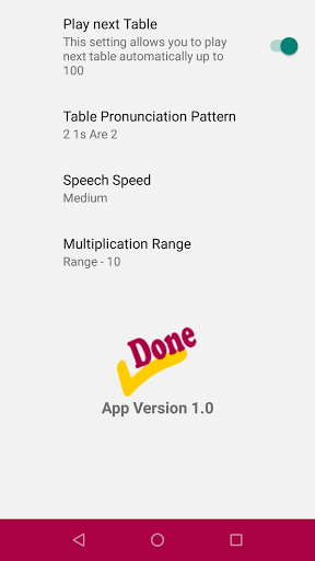 This App helps you to learn Math Tables up to 1000 numbers with Range of 10 and 20 - You have to set it through app's Setting provided on Home Page.