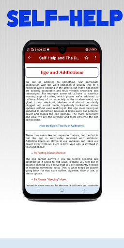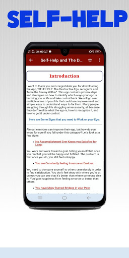 Many apps like self help books offline or self help diary or self help depression You get on online but this Self Help and The Destructive Ego app is a unique app for your self-help because it is an offline app that reduces our internet data and reduces our daily coast.