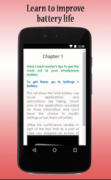The app contains information regarding battery life improvement. It elaborates some key points of how to get a better battery life instantly.