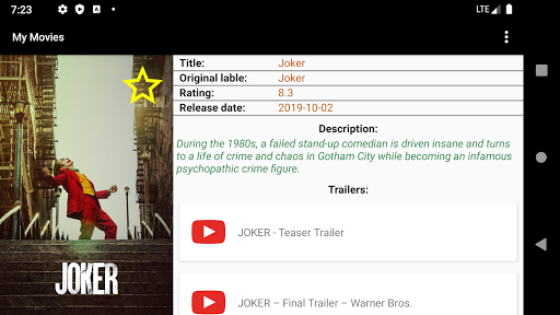 В приложение ты можешь очень быстро и просто найти лучшие фильмы известные этому миру, посмотреть их трейлеры, описание и почитать отзывы