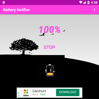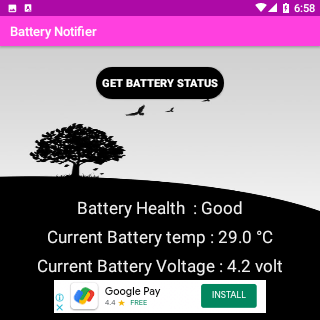 Battery Notifier is an Android application which monitor the status of the battery like Battery is Charging or Disconnected from wall adapter.