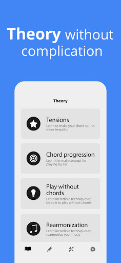 There are several tools for musicians, music theory, thousands of exercises on music theory, music perception, sheet music, chords, chord progression, musical intervals, musical cadences, which will help in your learning and evolution in acoustic guitar, electric guitar, piano and any musical instrument in general.