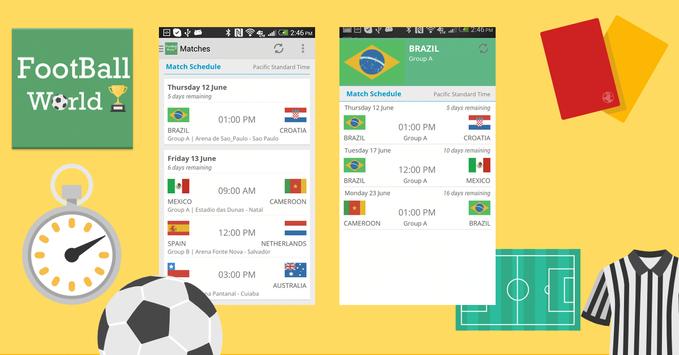 A perfect companion app to keep up with football World Cup 2014 in Brazil. We bring all 64 matches with live score update and all other details.