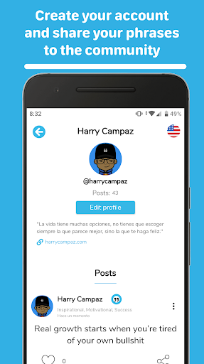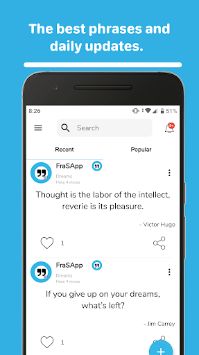 Join the best and largest community of quotes in Spanish, English and Portuguese, if you like to share images of beautiful quotes, quotes to fall in love on Social Networks and instant messaging Apps, you need status for WhatsApp or status on Facebook and Instagram or quotes for Twitter, well fraSApp - With Images allows you to bring the best Images and quotes on your Mobile for you to Share.