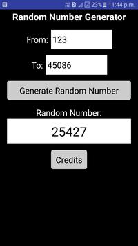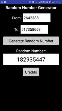'Random Number Generator' app allows you to generate random numbers easily. This small-sized app is simple to use and can be used offline as well - Just fill the 'From' and 'To' fields with the desired numbers to set the range and then click 'Generate Random Number' button to generate a random number from the range.