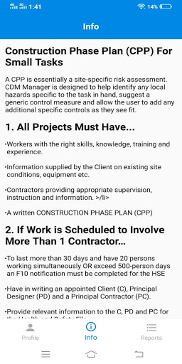 CDM Manager helps the user with the Construction Design Management Regulations.