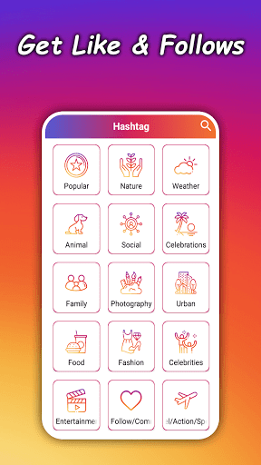 "Get Real Followers and Like For Instagram Hashtag" contains popular hashtags for promotion, to get more likes and subscriptions. Add best hashtags for more likes to your captions, photos, and posts on social networks and promote them.