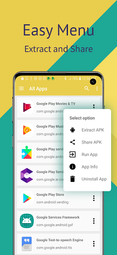 ★ Easy to use menu to extract, share, run and uninstall applications.