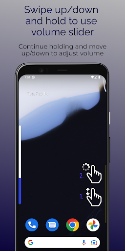- Hold after swipe to show volume slider for specific adjustment. Continue holding and swipe to set volume.